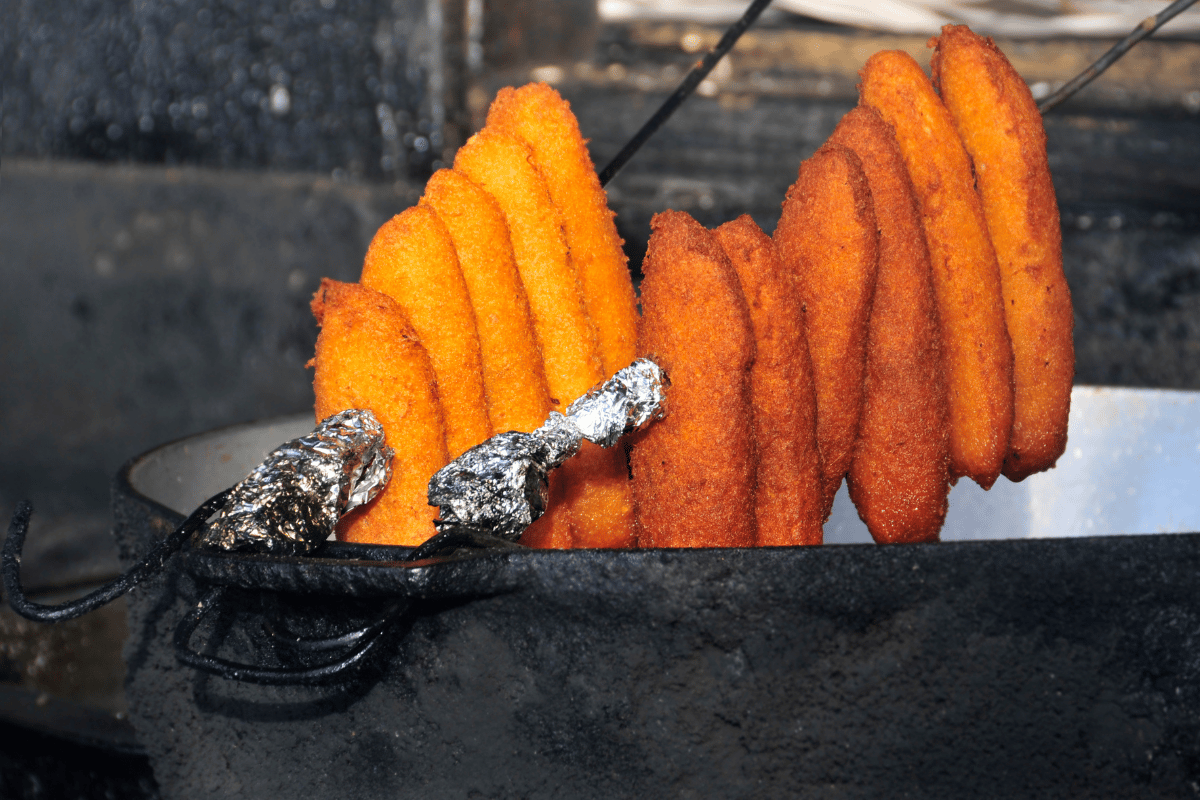 The dough is folded into a cylindrical shape and deep-fried in vegetable oil. Alcapurrias are served immediately and often dipped into either a hot sauce or “mayoketchup” to enhance the flavor.